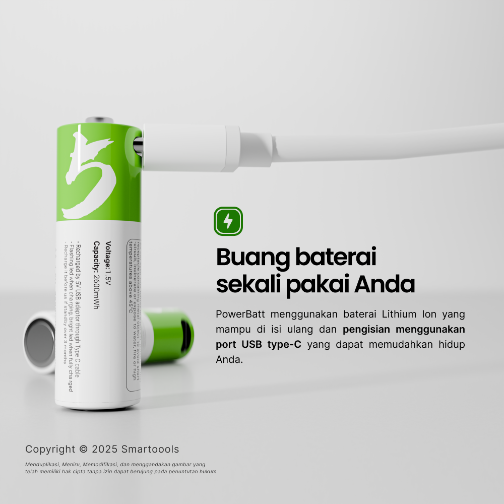 SMARTOOOLS POWERBATT USB TYPE-C RECHARGEABLE BATTERY AA & AAA