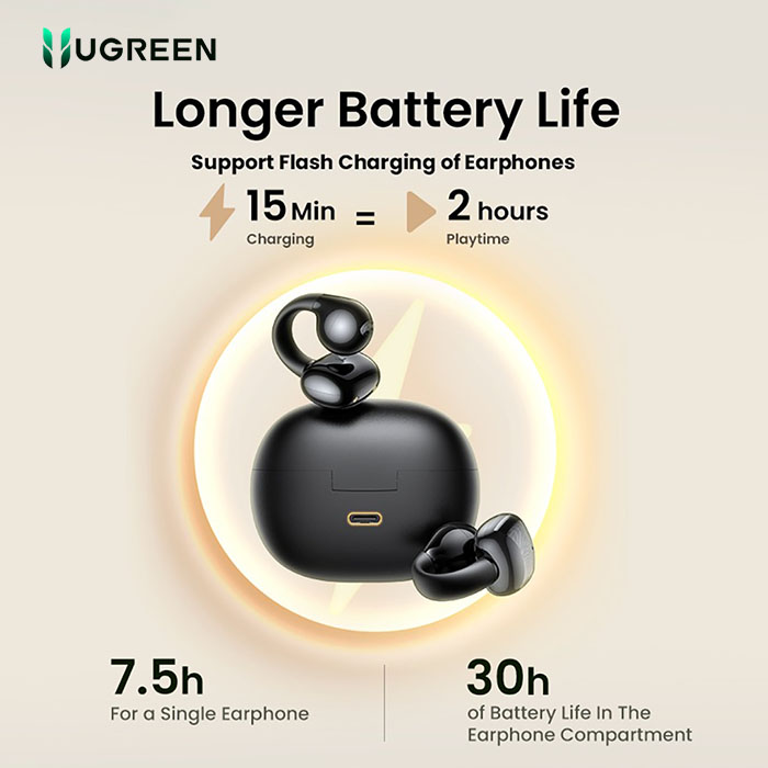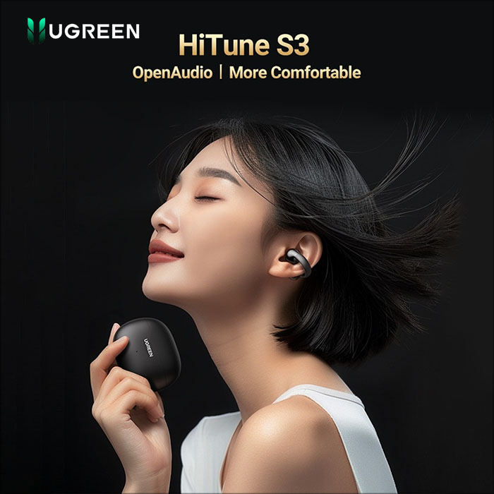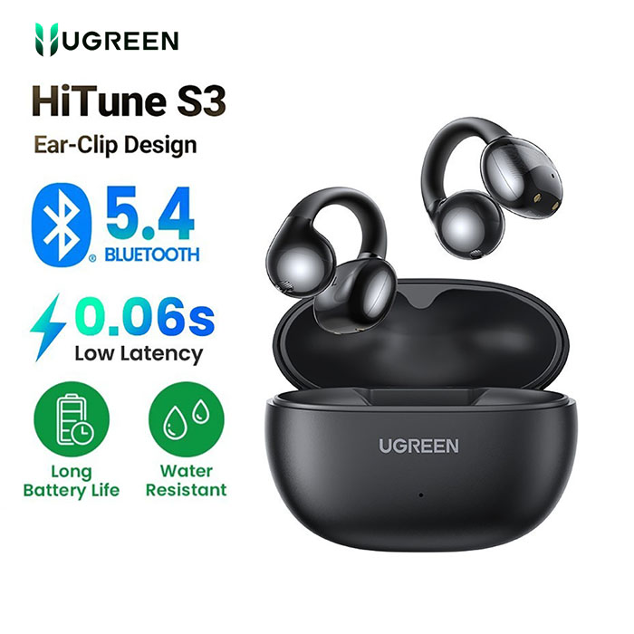 Earphone Bluetooth dengan Klip Telinga Terbuka Ugreen HiTune S3 sangat cocok untuk gaya hidup aktif, menghadirkan suara dan kenyamanan terbaik, Dilengkapi konektivitas Bluetooth, earphone ini menyediakan koneksi yang stabil dan cepat untuk musik, panggilan, dan latihan yang lancar