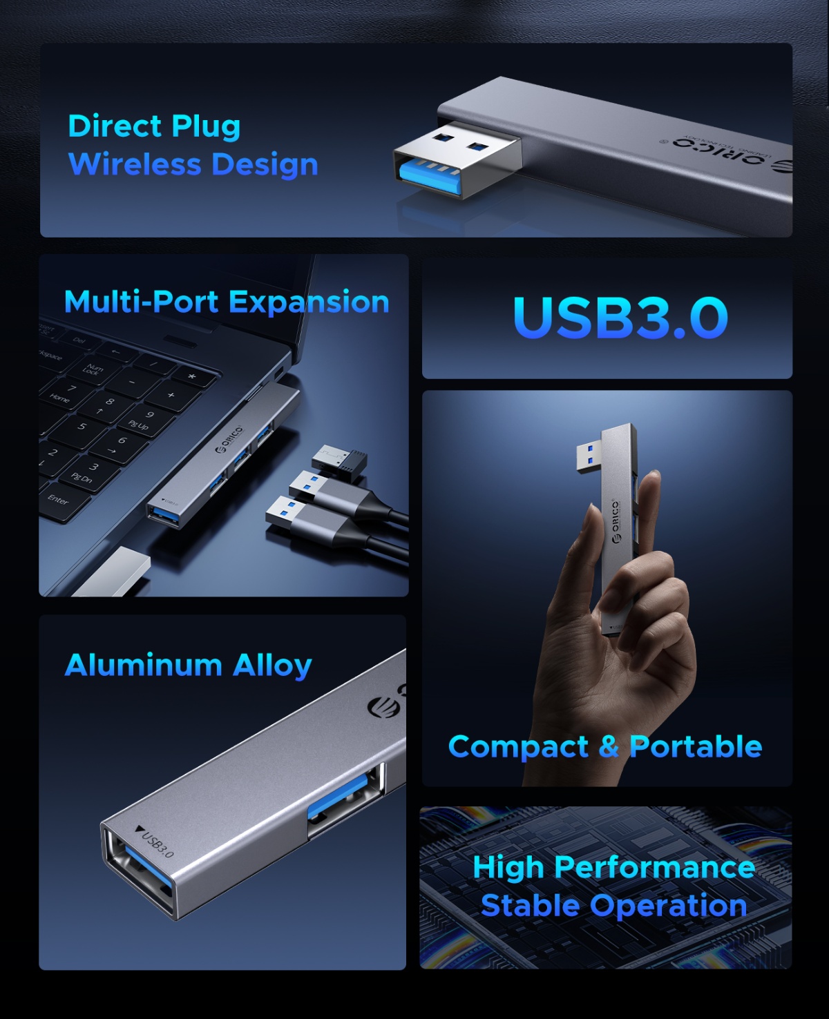 ORICO USB HUB 3.0 MINI 4 PORT PLUG IN YSZ1-U3 GREY / YSZ1-U3-GY-BP