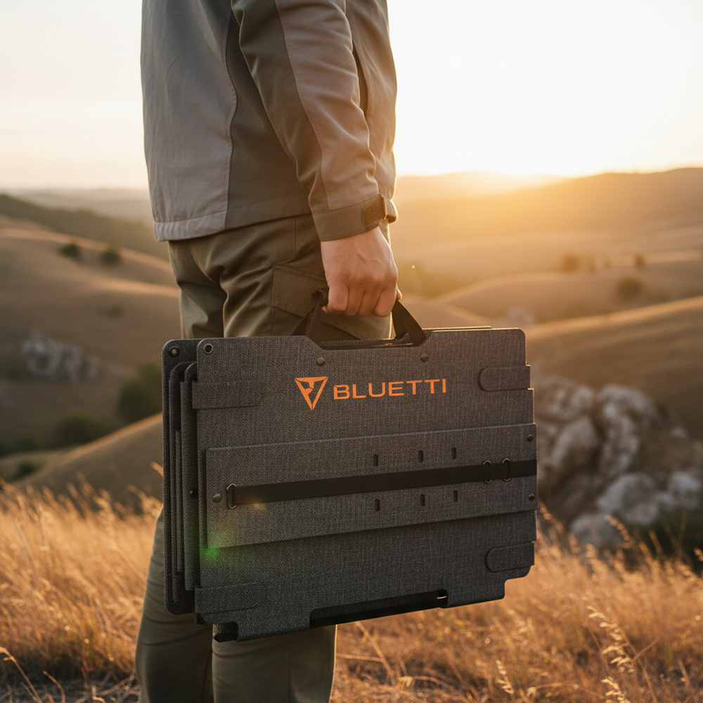 Sangat ideal dipasangkan dengan unit Portable Power Station kapasitas menengah hingga besar seperti Bluetti seri EB70, AC180, atau AC200P untuk pengisian daya mandiri.