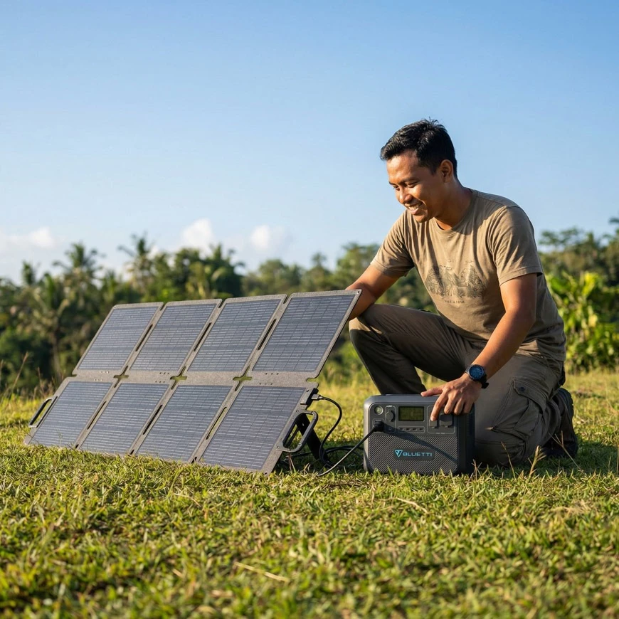 Sangat direkomendasikan untuk seri BLUETTI AC (seperti AC2A, AC70, AC180) dan power station lainnya yang mendukung input solar sesuai spesifikasi voltase panel.