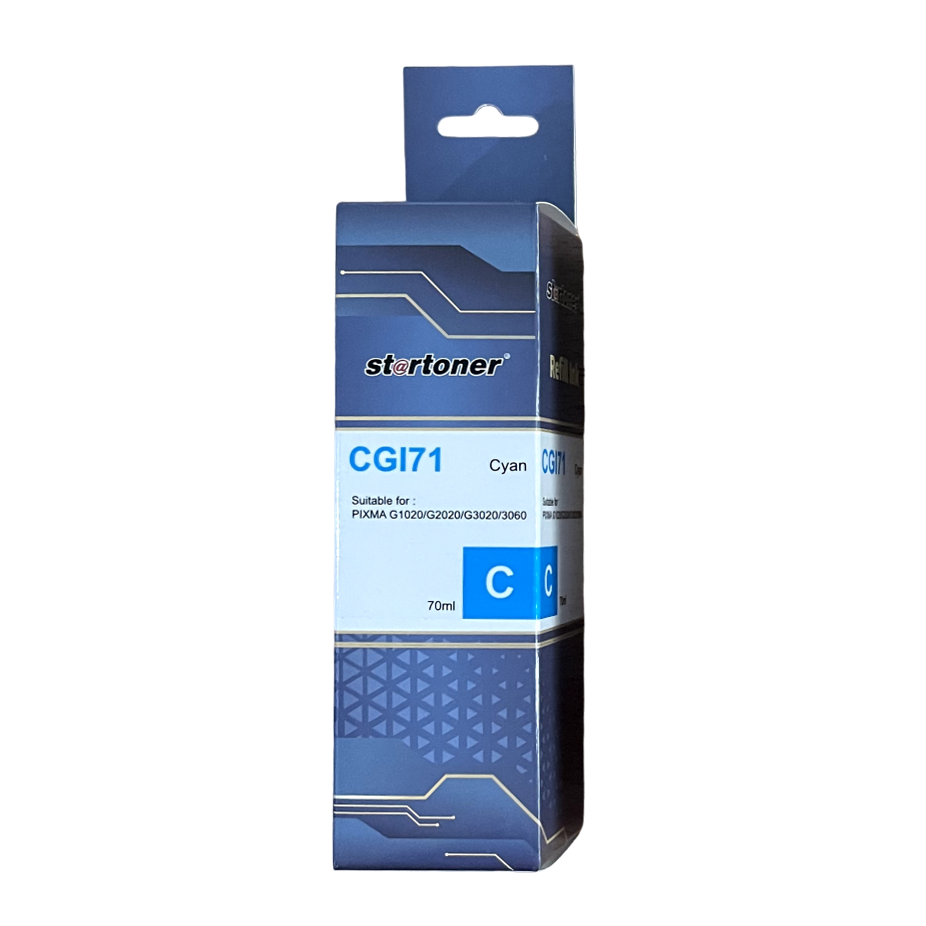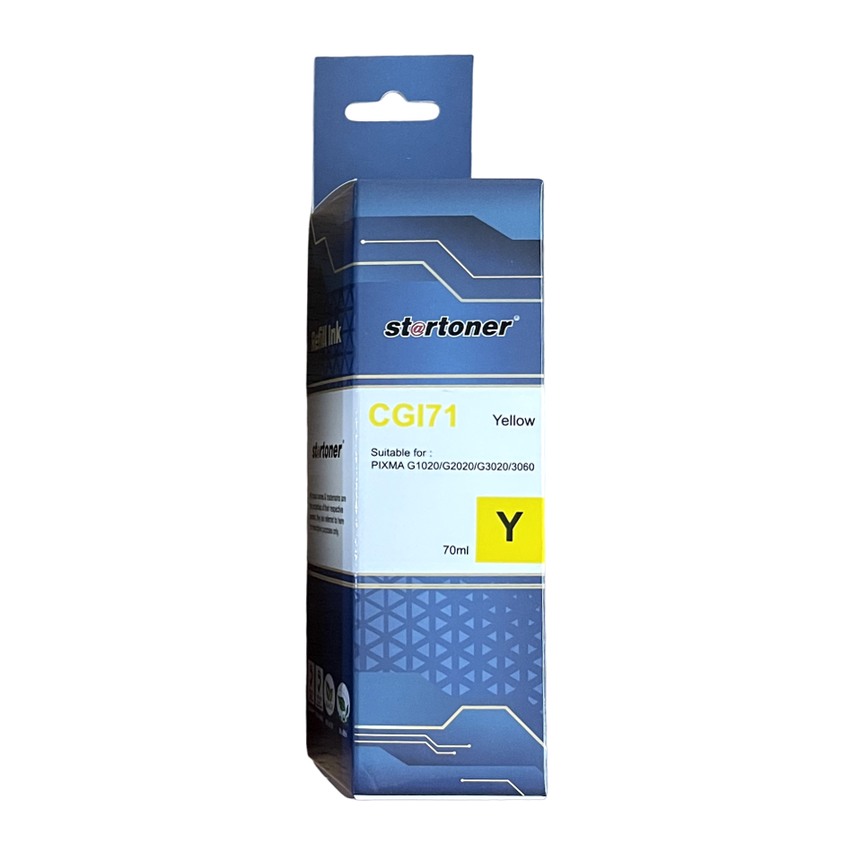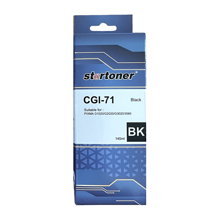 Tinta Refill Start untuk Canon GI 71 Series memberikan hasil cetak tajam dan warna akurat Tersedia Black 140ml serta Cyan Magenta Yellow 70ml Aman untuk printhead dan anti sumbat untuk printer Canon G Series terbaru