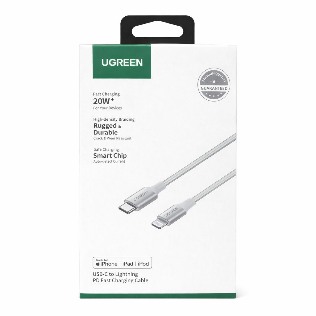 UGREEN 70525 adalah kabel USB-C ke Lightning premium dengan jalinan nilon kuat dan sertifikasi MFi. Menjamin pengisian daya cepat dan transfer data aman untuk semua perangkat Apple Anda tanpa risiko kerusakan sirkuit.